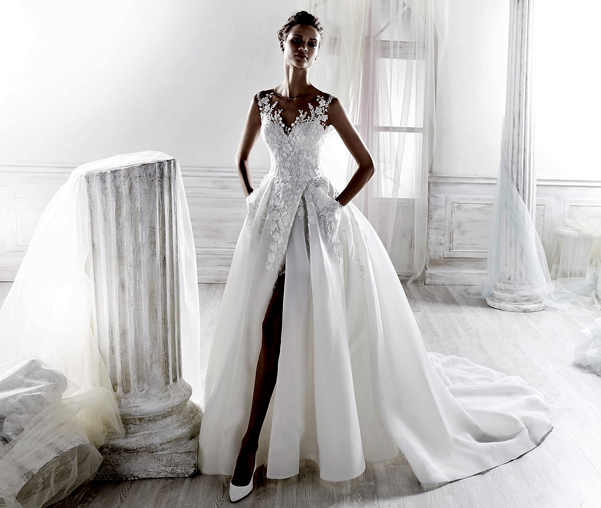 Offering both freedom of movement and a modern edge, slit wedding dresses are a signature feature in Jabo Bridal’s bold collections. A thigh-high or subtle side slit elegantly reveals the leg, adding a striking detail—especially in photographs. When combined with mermaid, sheath, or A-line silhouettes, slit gowns exude both style and confidence.