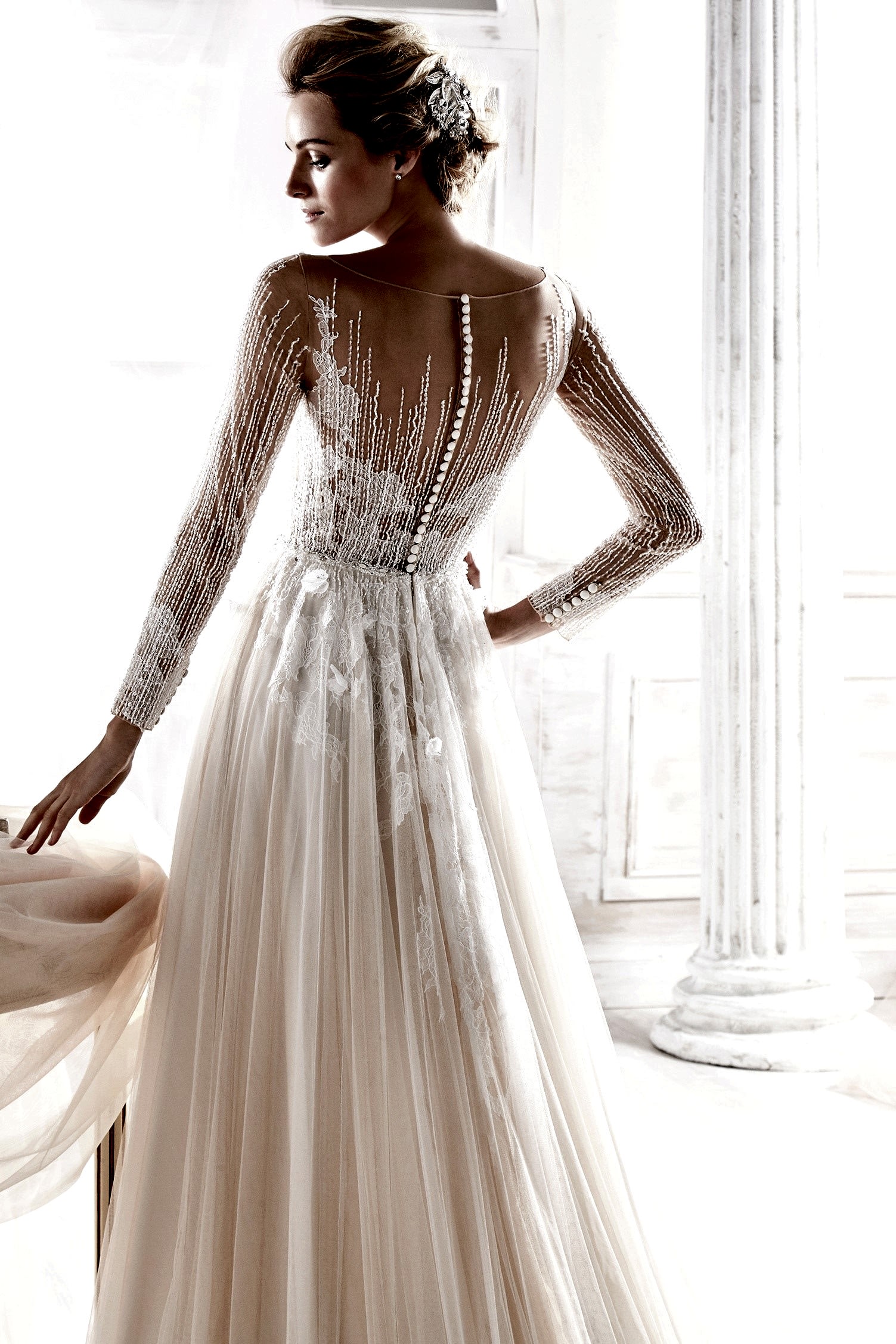 Corset-detail wedding dresses bring a bold and modern touch to bridal fashion, and Jabo Bridal’s innovative collection showcases them beautifully. Featuring sheer tulle with lace or bead embellishments, these details delicately define the waistline. Combining romance with a daring edge, corset-detail gowns are perfect for fashion-forward brides.